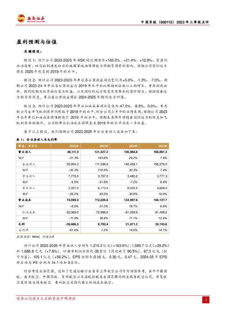 西南证券:中国东航(600115)-2023年三季报点评:三季度扭亏为盈,归母净利润创单季历史新高.pdf