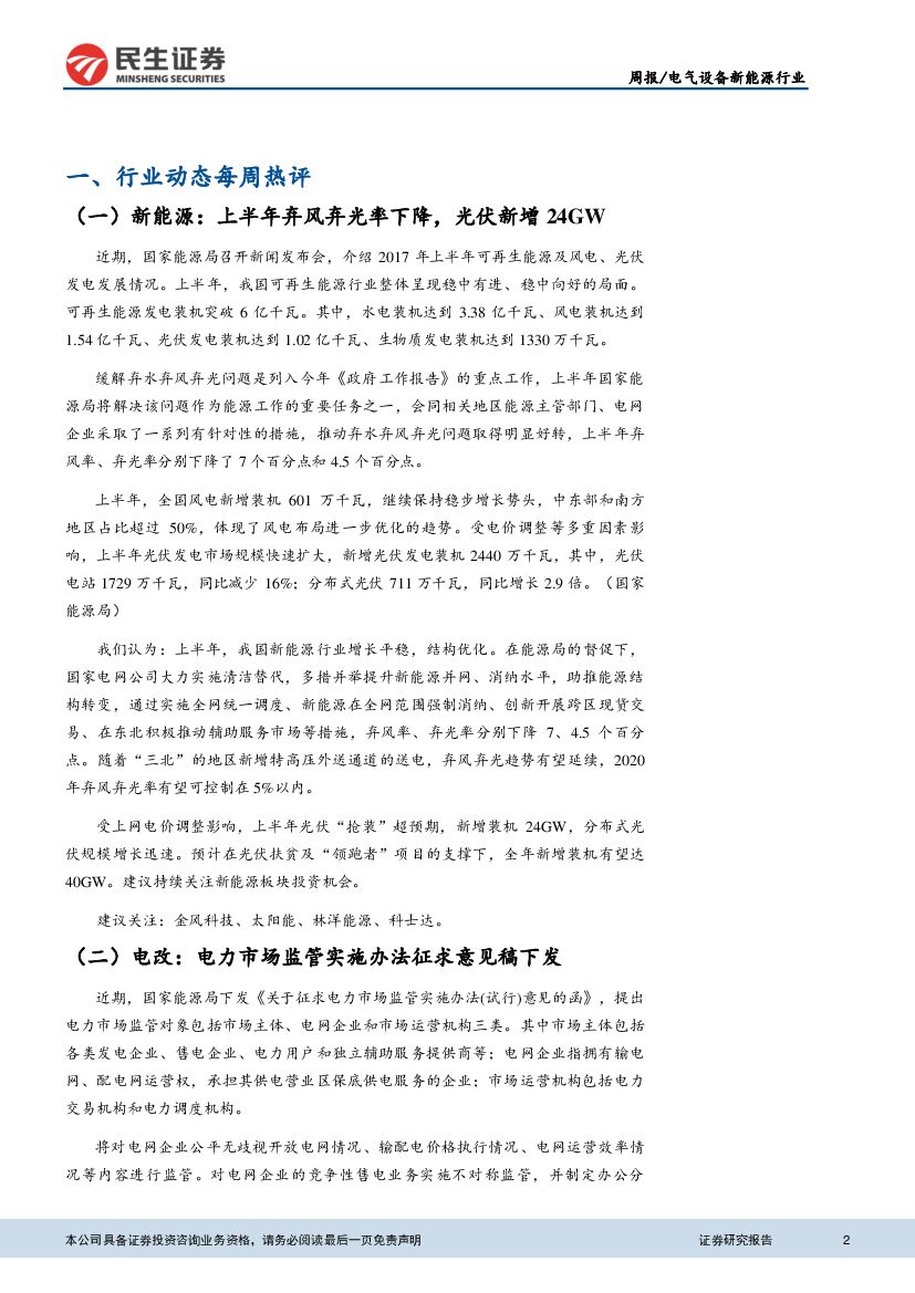 民生证券:电气设备与新能源行业周报:上半年弃风弃光率下降,电力市场监管办法征求意见稿下发.pdf