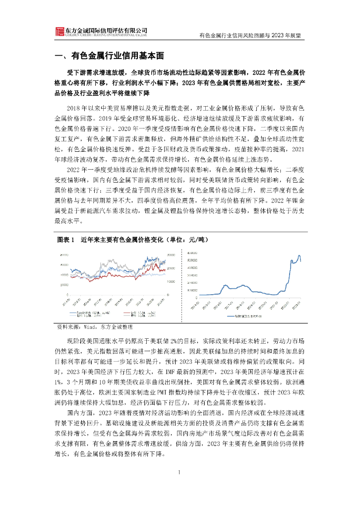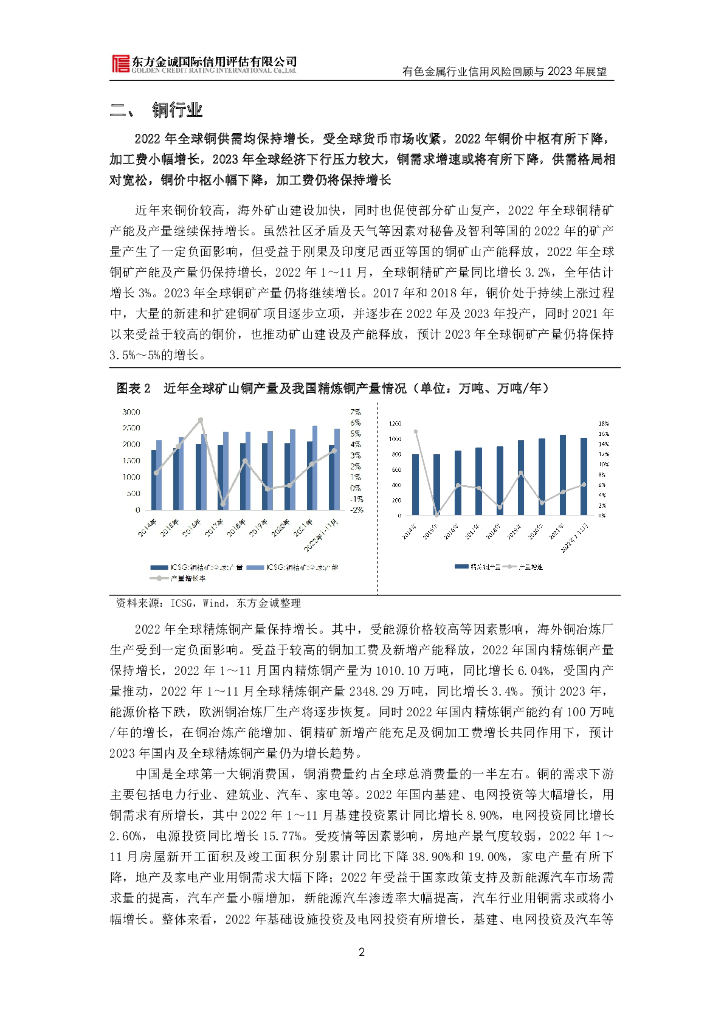 东方金诚:展望系列——有色金属行业信用风险回顾与2023年展望.pdf