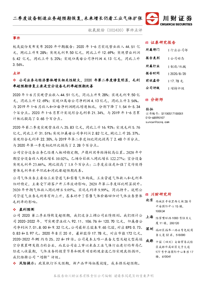 川财证券:杭氧股份(002430)-中报点评:二季度设备制造业务超预期恢复,未来增长仍看工业气体扩张.pdf