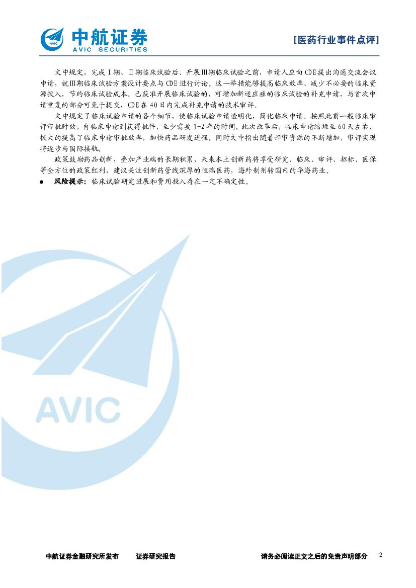 中航证券:医药行业:临床试验审评审批全面改革,审批时间将大幅缩短.pdf