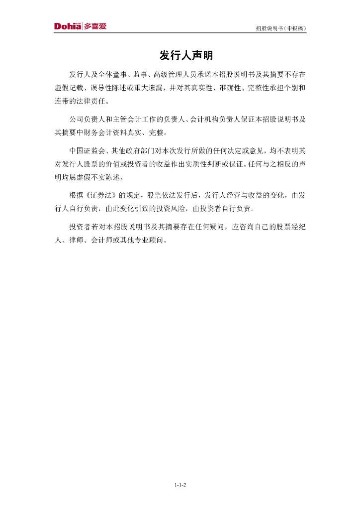 多喜爱家纺股份有限公司深交所主板IPO上市招股说明书.pdf