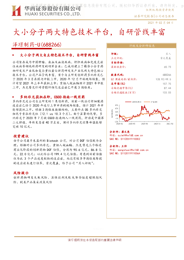 华西证券:泽璟制药(688266)-大小分子两大特色技术平台,自研管线丰富.pdf