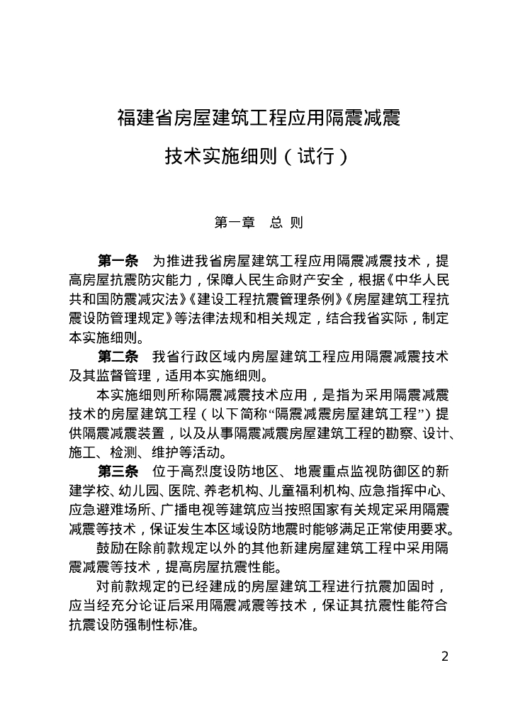 福建省房屋建筑工程应用隔震减震技术实施细则(试行).doc