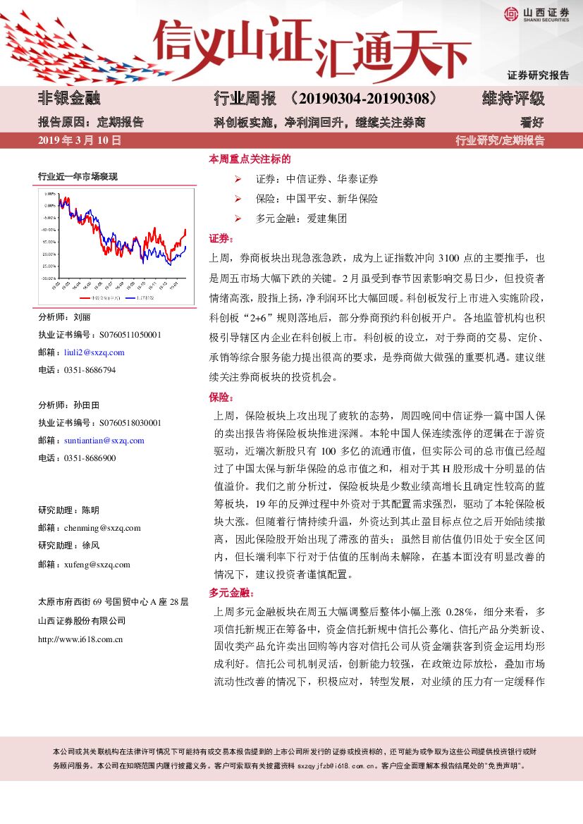 山西证券:非银金融行业周报:科创板实施,净利润回升,继续关注券商.pdf