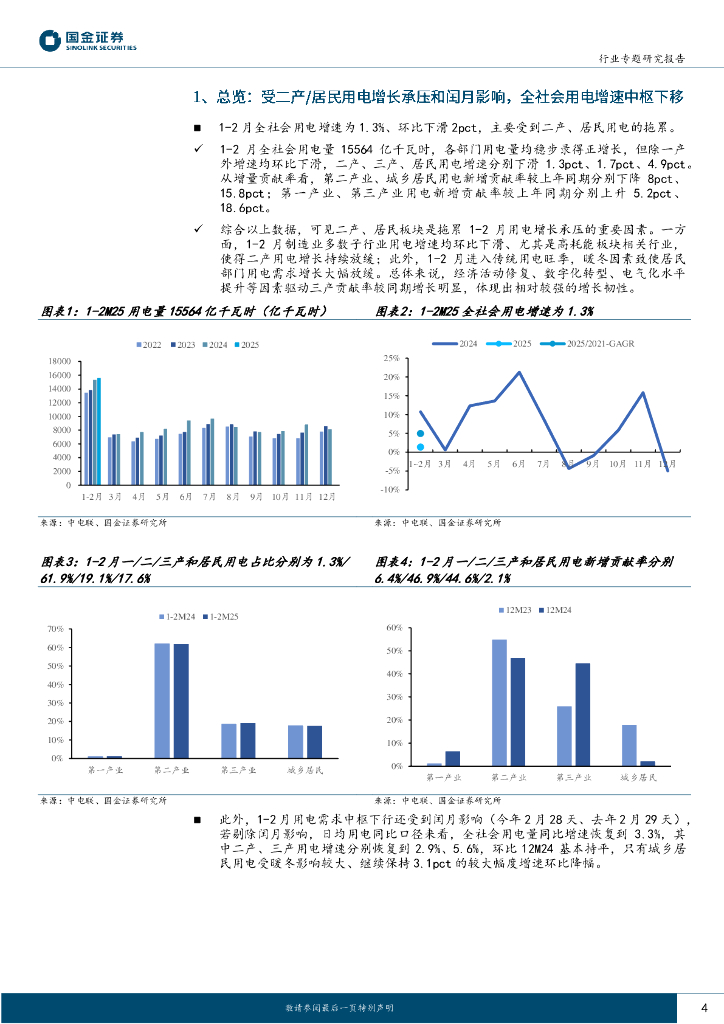 国金证券:公用事业及环保产业行业研究:1-2月用电:暖冬&二产结构转型,用电增长短期承压.pdf