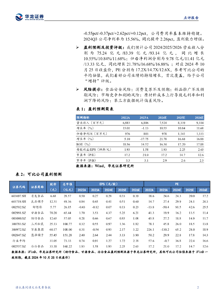 华龙证券:洽洽食品(002557)-2024年三季报点评报告:成本红利释放,利润增速优于收入.pdf