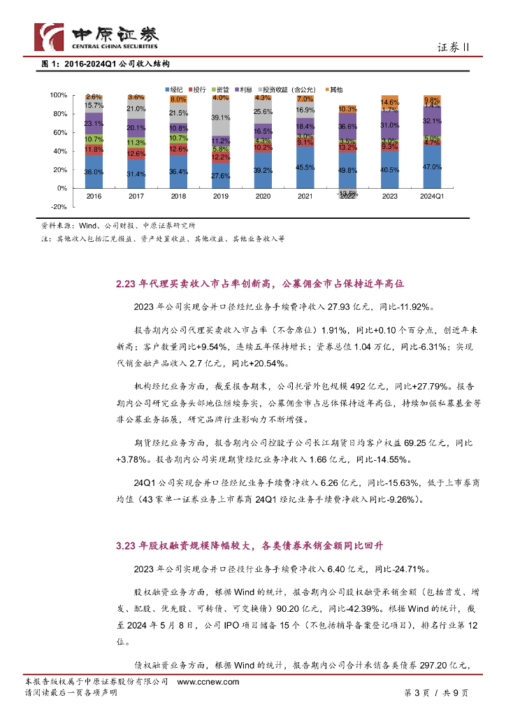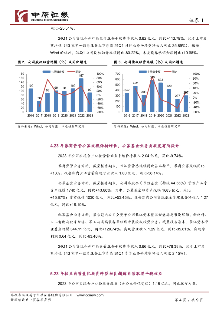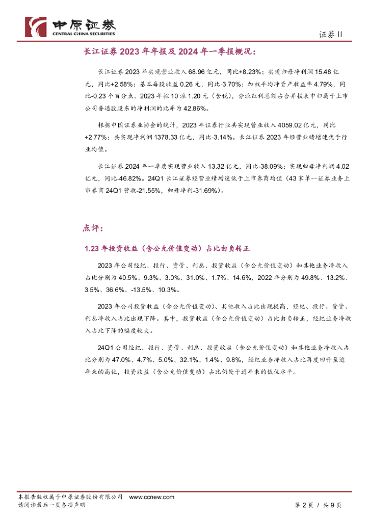 中原证券:长江证券(000783)-2023年年报及2024年一季报点评:经纪、利息表现稳定,权益自营有望释放业绩弹性.pdf