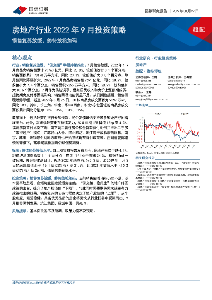 国信证券:房地产行业2022年9月投资策略:销售复苏放缓,静待放松加码.pdf
