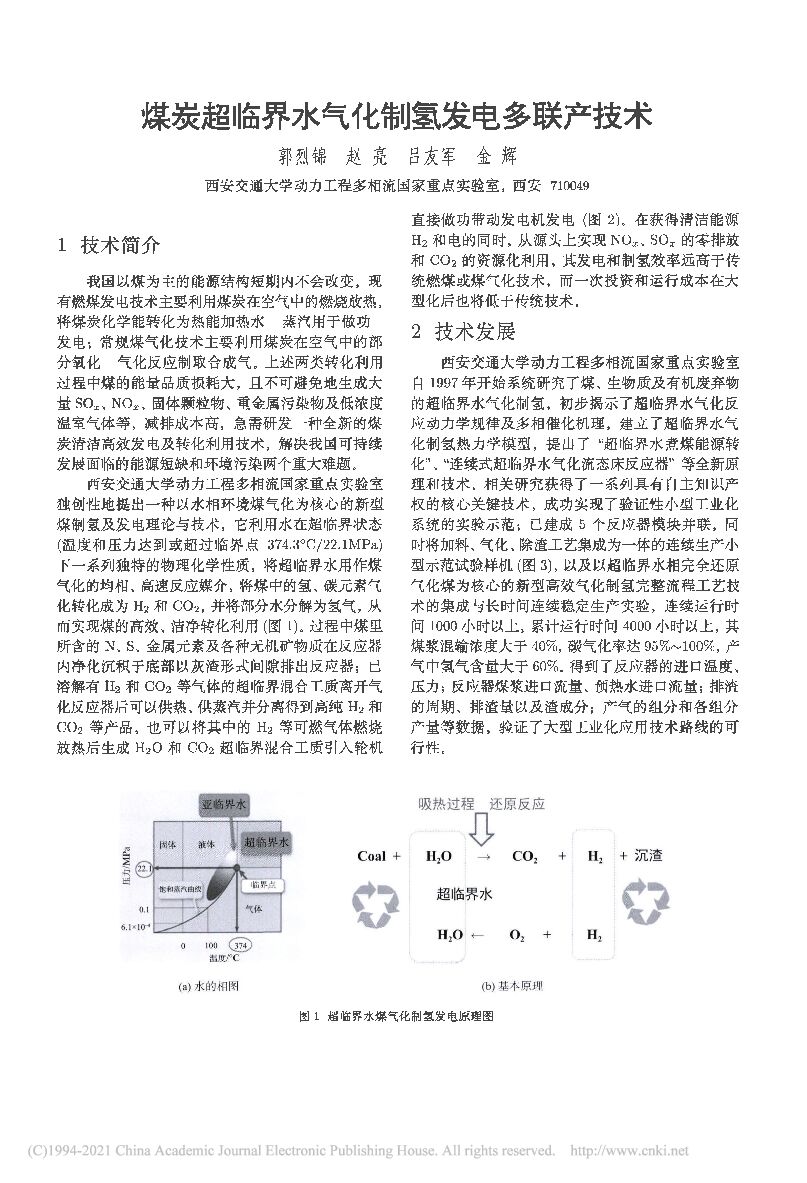西安交通大学:煤炭超临界水气化制氢发电多联产技术.pdf