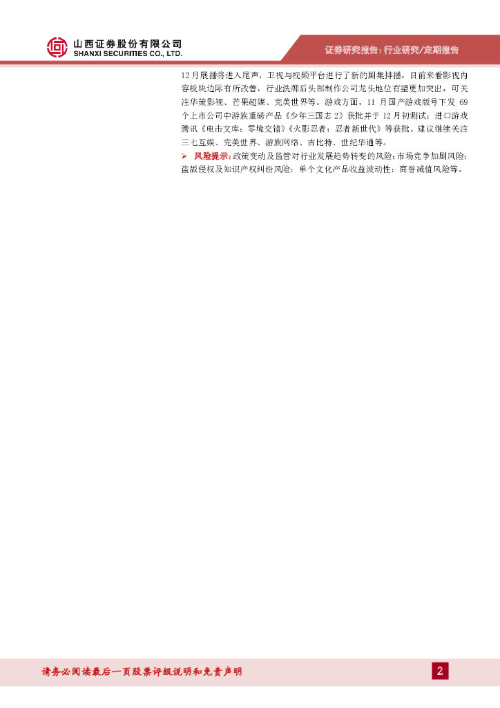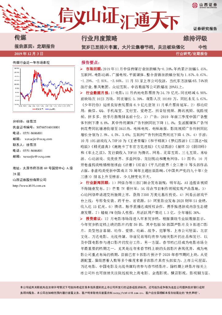 山西证券:传媒行业月度策略:贺岁已至排片丰富,大片云集春节档,关注板块催化.pdf