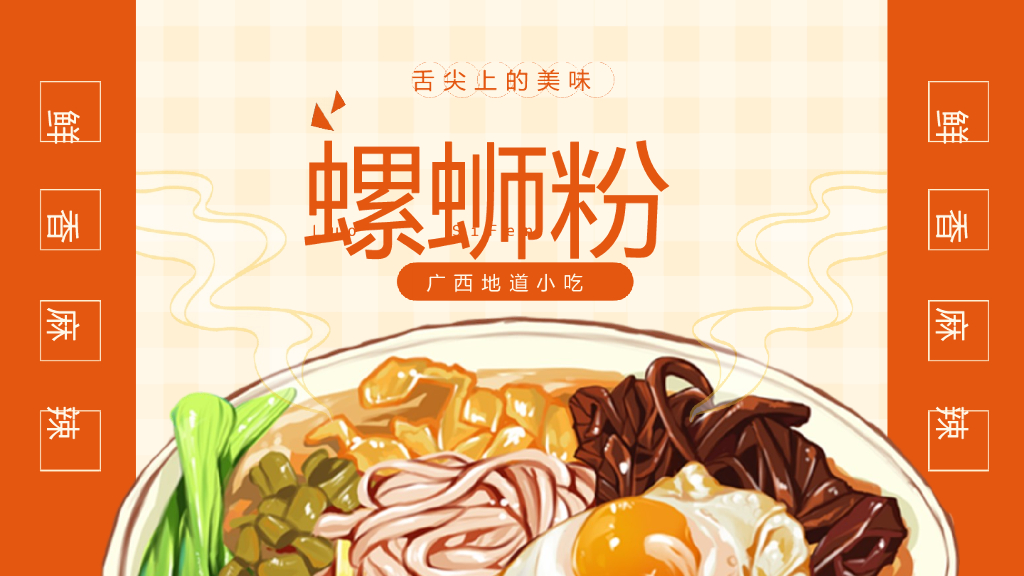扁平插画风广西小吃螺蛳粉PPT模板.ppt