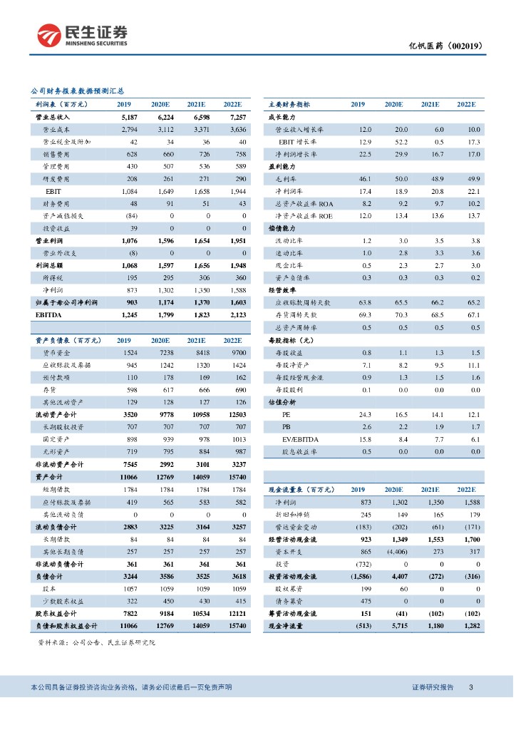 民生证券:亿帆医药(002019)-2019年年报及2020年1季报预告点评:泛酸钙处于价格上升周期,在研产品有望进入收获期.pdf