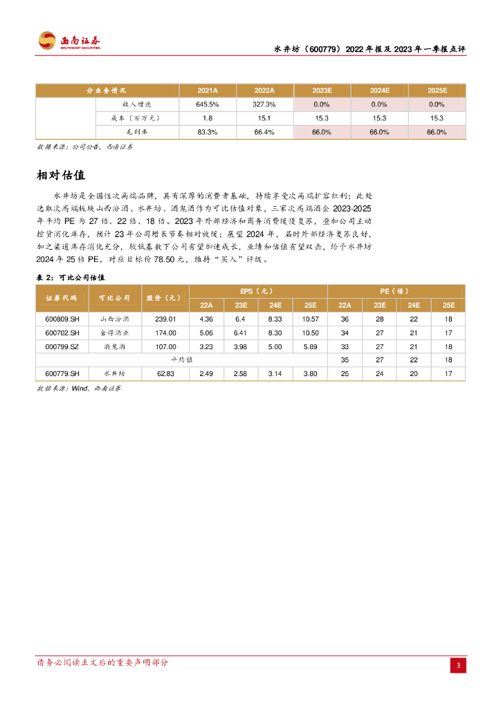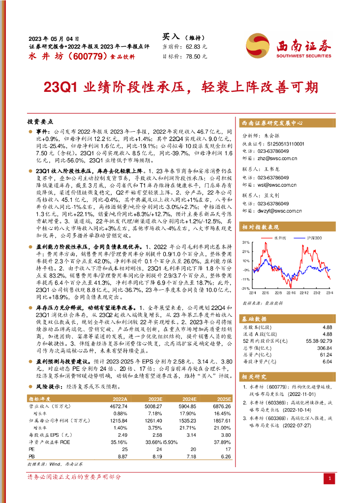 西南证券:水井坊(600779)-23Q1业绩阶段性承压,轻装上阵改善可期.pdf