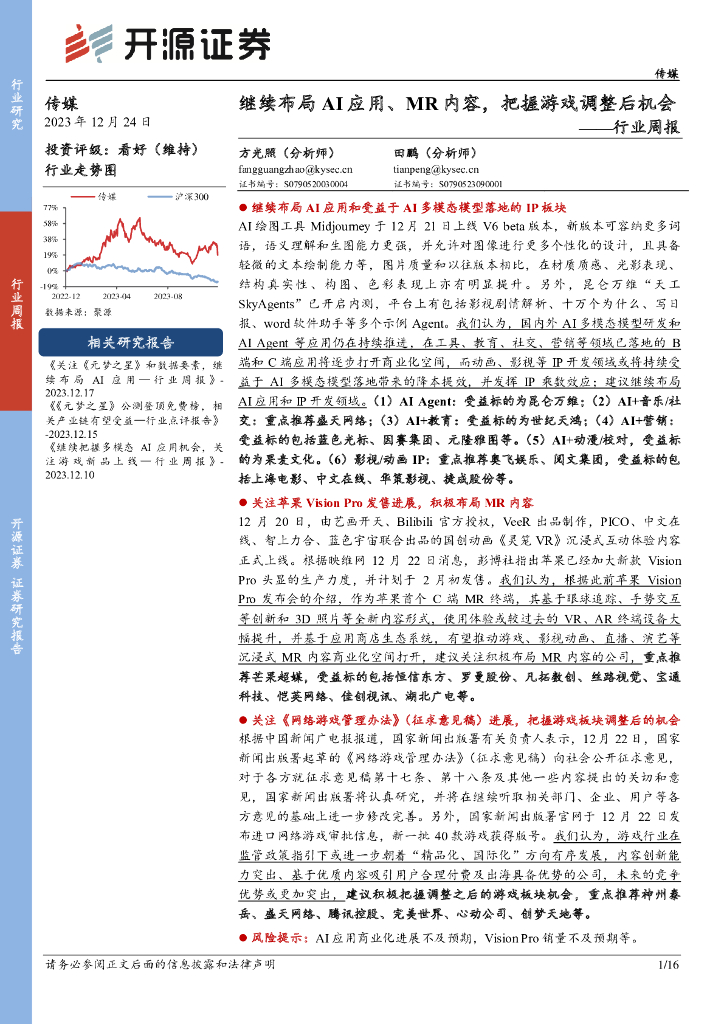 开源证券:传媒行业周报:继续布局AI应用、MR内容,把握游戏调整后机会.pdf