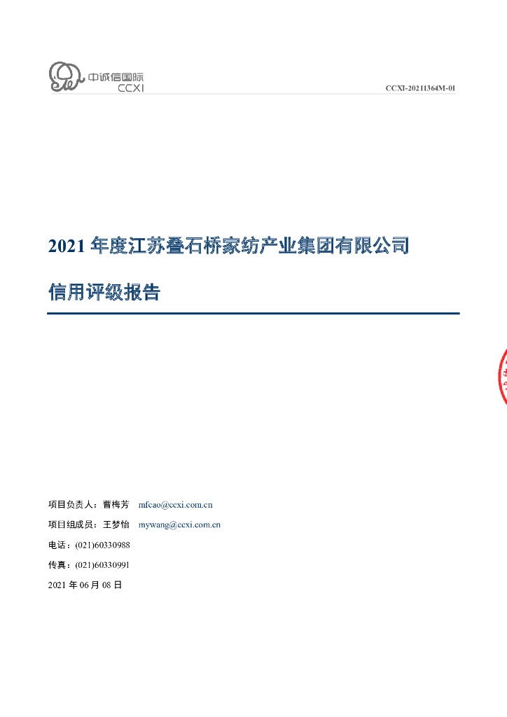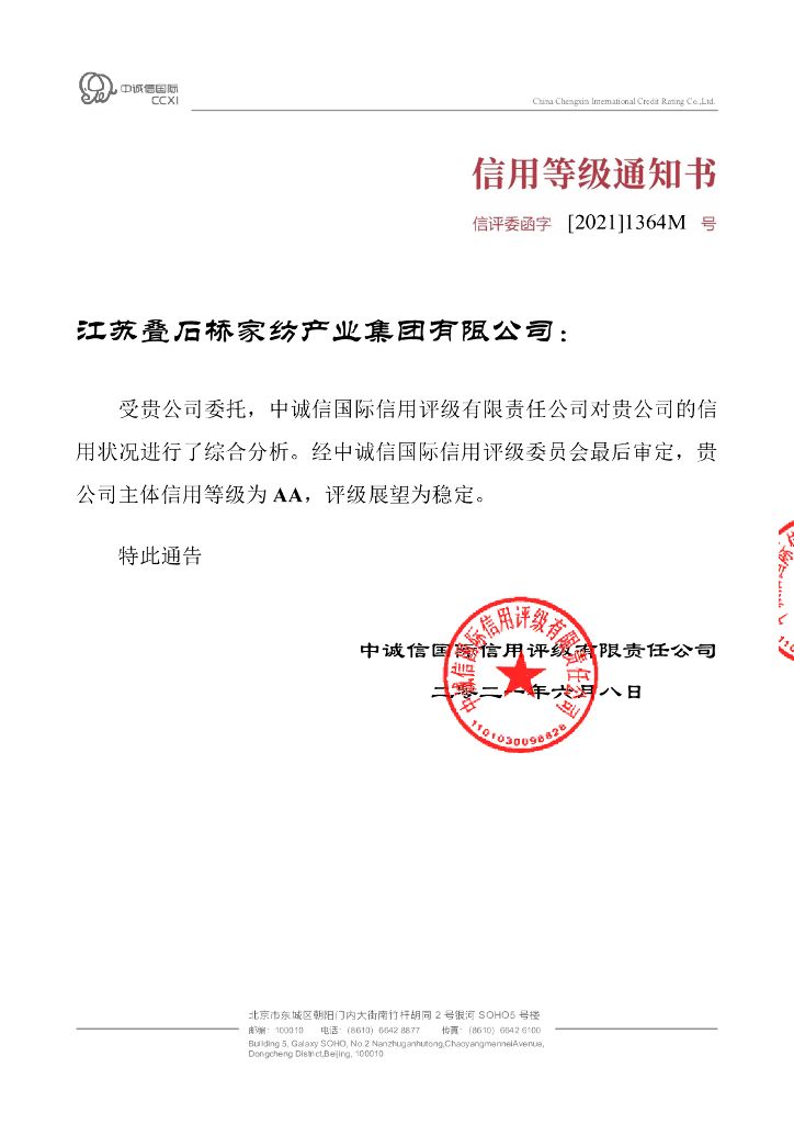 中诚信:2021年度江苏叠石桥家纺产业集团有限公司信用评级报告.pdf