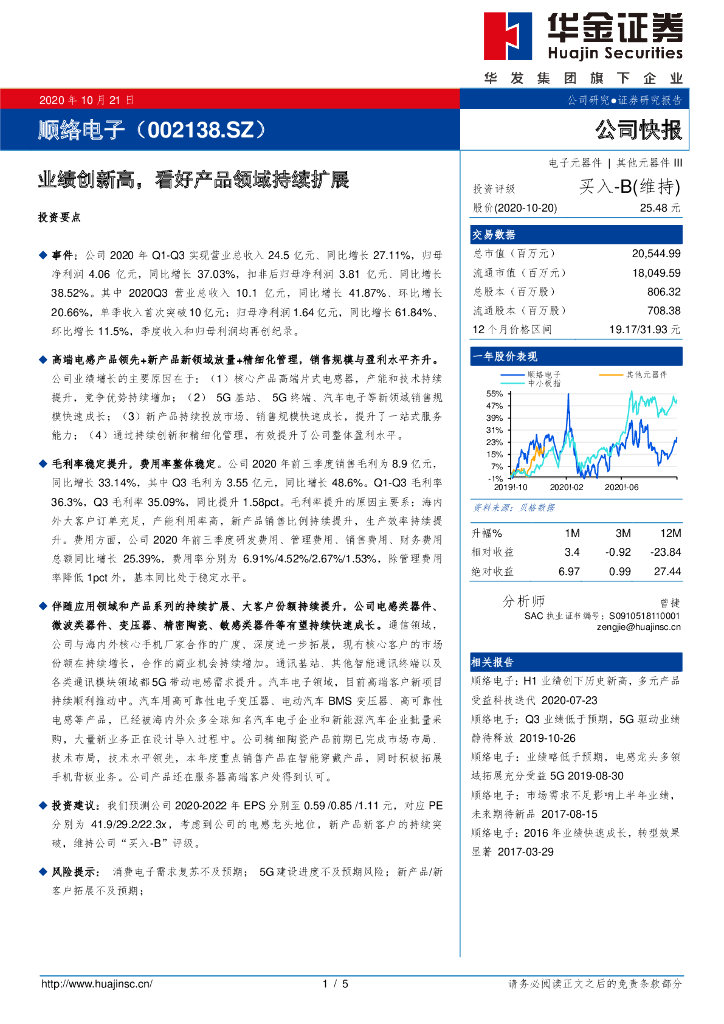 华金证券:顺络电子(002138)-业绩创新高,看好产品领域持续扩展.pdf