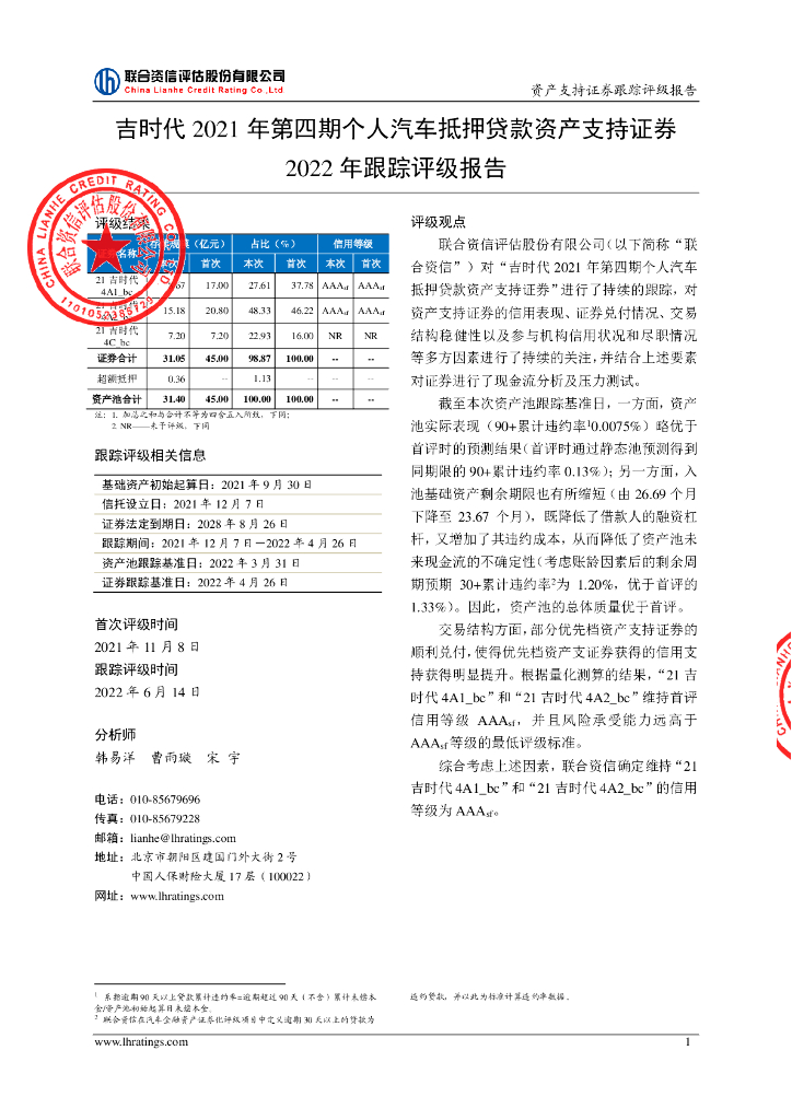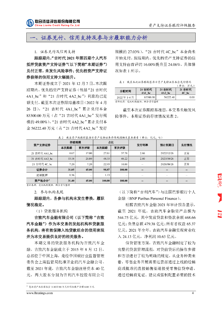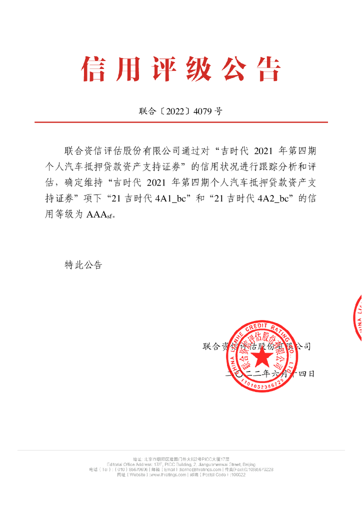联合资信:吉时代2021年第四期个人汽车抵押贷款资产支持证券2022年跟踪评级报告.pdf