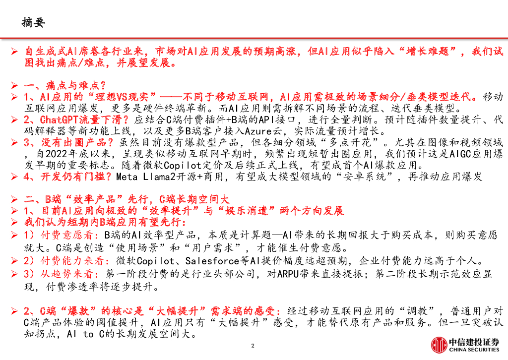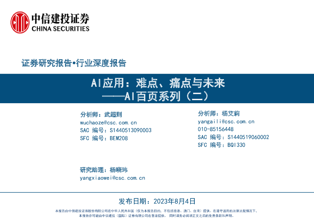 中信建投:计算机行业AI百页系列(二):AI应用,难点、痛点与未来.pdf