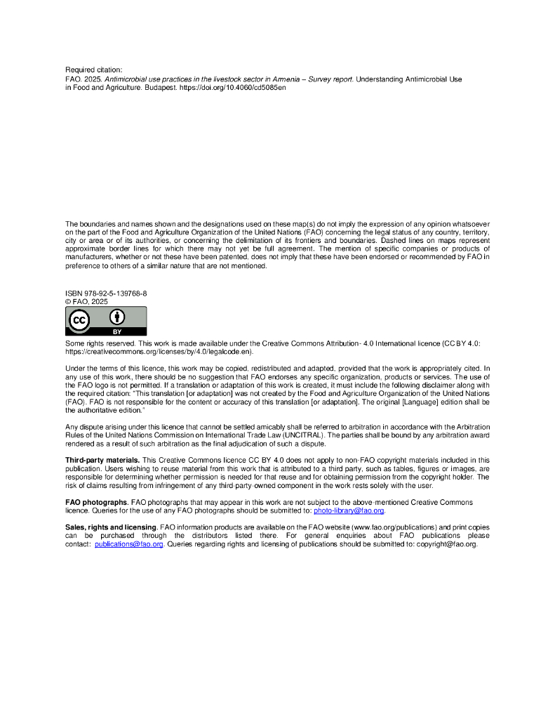 FAO联合国粮农组织:2025年亚美尼亚牲畜部门的抗菌使用实践调查报告(英文版).pdf