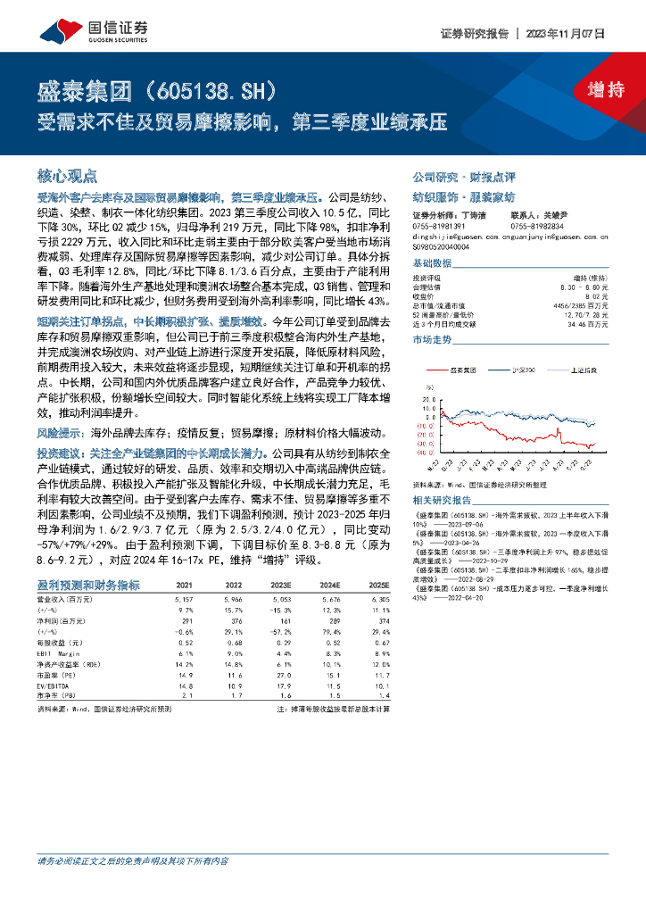 国信证券:盛泰集团(605138)-受需求不佳及贸易摩擦影响,第三季度业绩承压.pdf