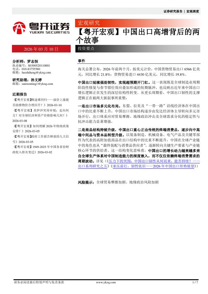 粤开证券:【粤开宏观】中国出口高增背后的两个故事-260310.pdf