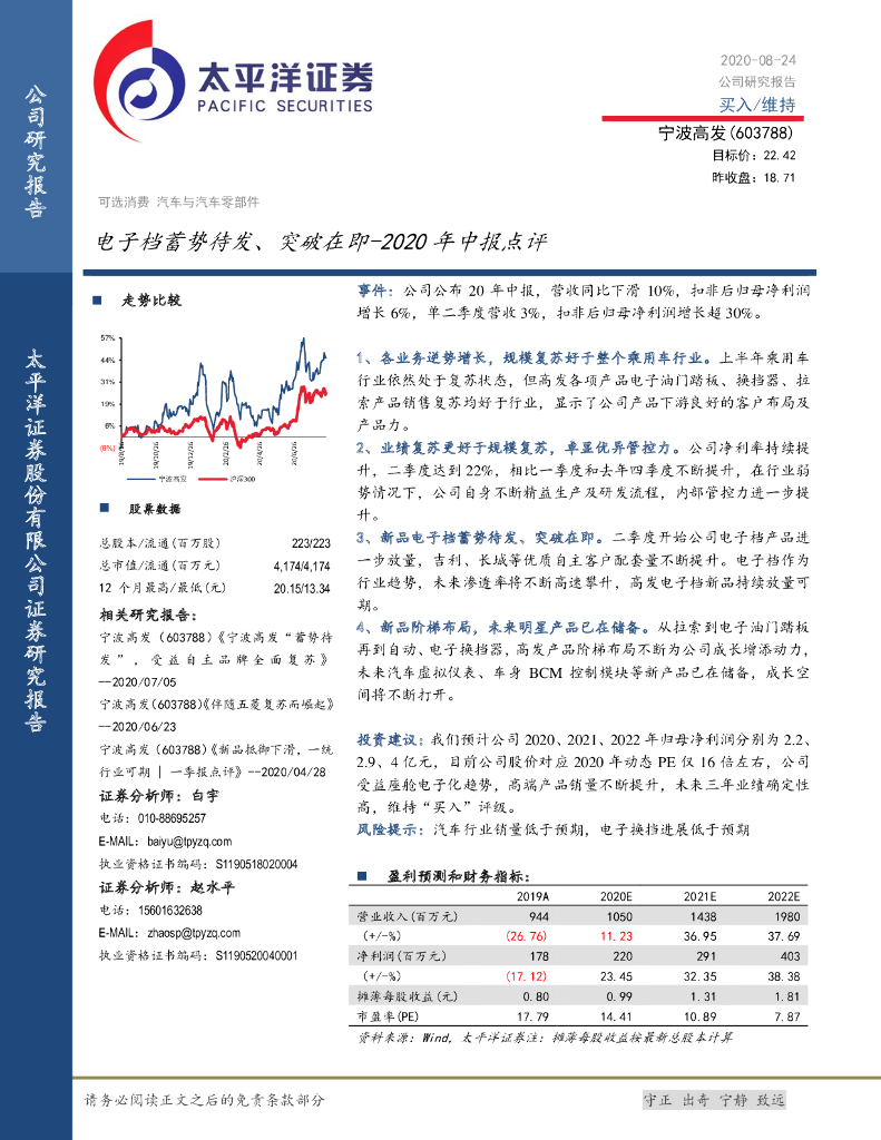 太平洋证券:宁波高发(603788)-2020年中报点评:电子档蓄势待发、突破在即.pdf