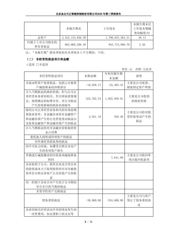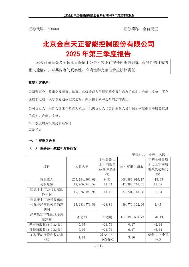 600560-金自天正:北京金自天正智能控制股份有限公司2025年第三季度报告.pdf