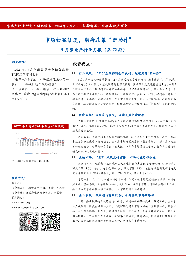 亿翰智库:6月房地产行业月报(第72期):市场初显修复,期待政策“新动作”.pdf