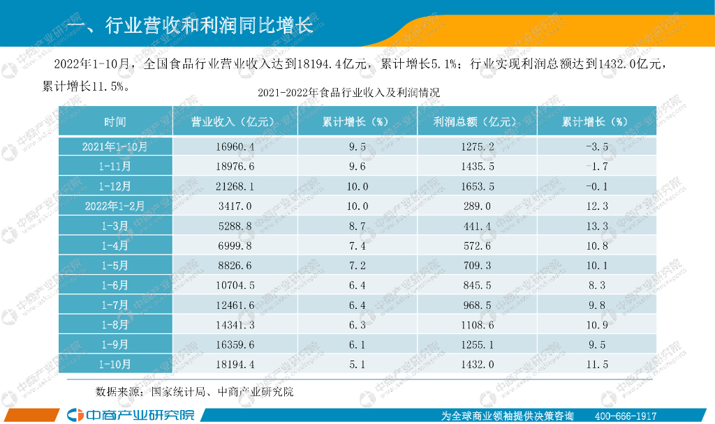 中商产业研究院:中国食品行业经济运行月度报告(2022年1-10月).pdf