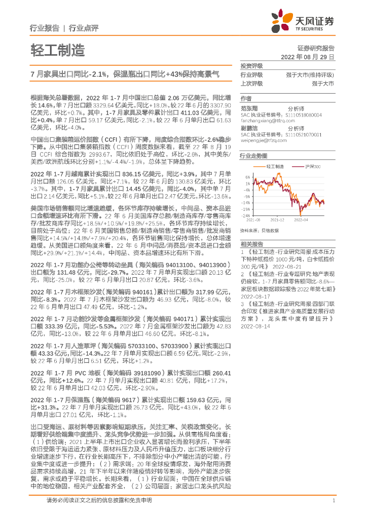 天风证券:轻工制造:7月家具出口同比-2.1%,保温瓶出口同比+43%保持高景气.pdf
