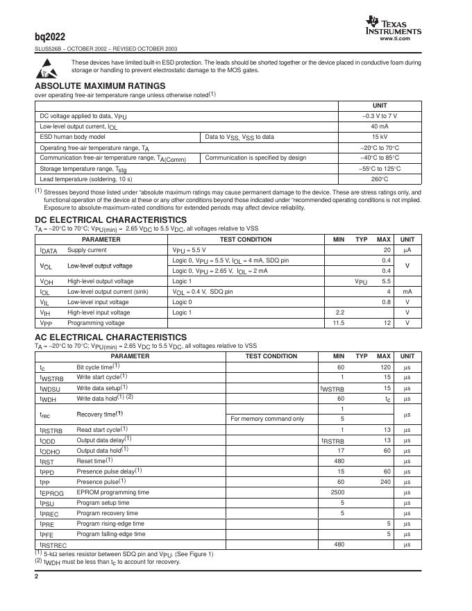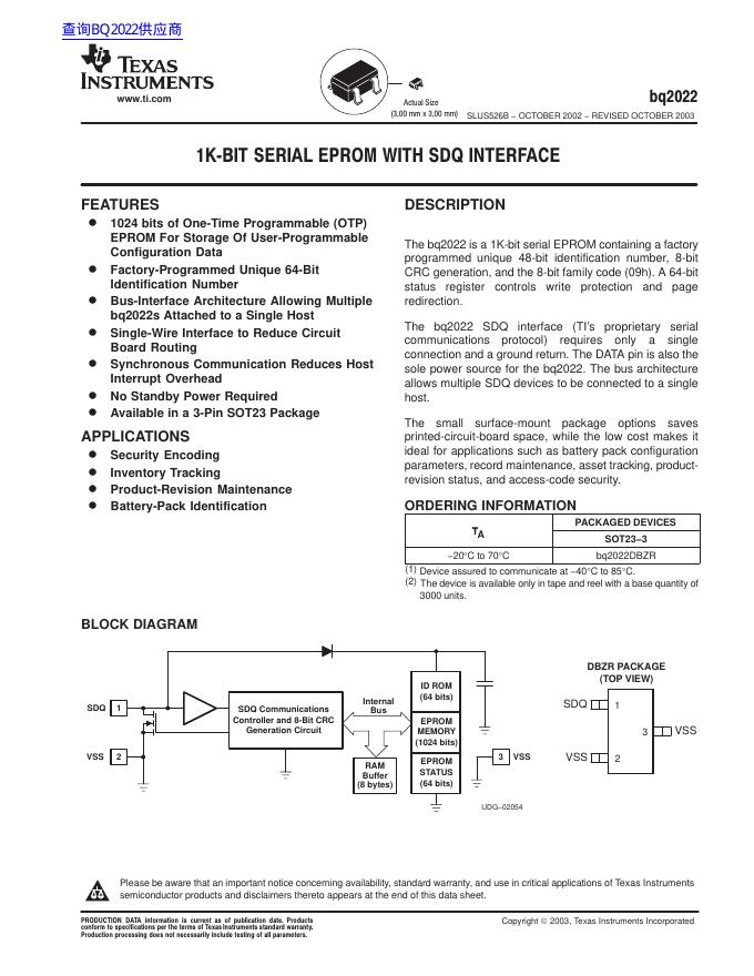 TEXAS INSTRUMENTS bq2022 数据手册.pdf