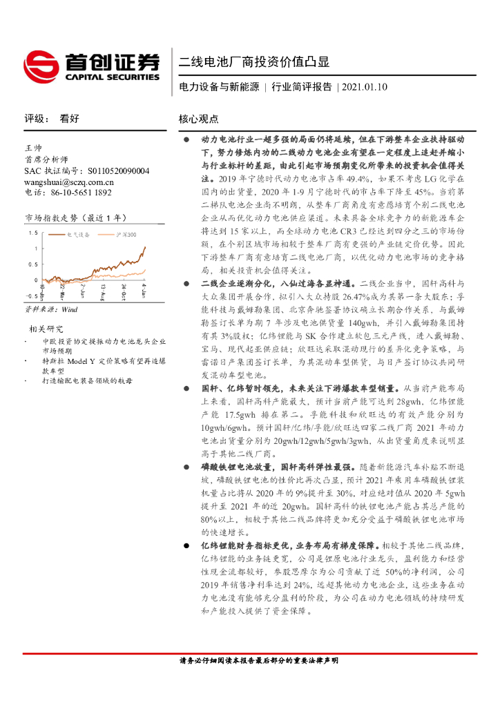 首创证券:电力设备与新能源行业简评报告:二线电池厂商投资价值凸显.pdf