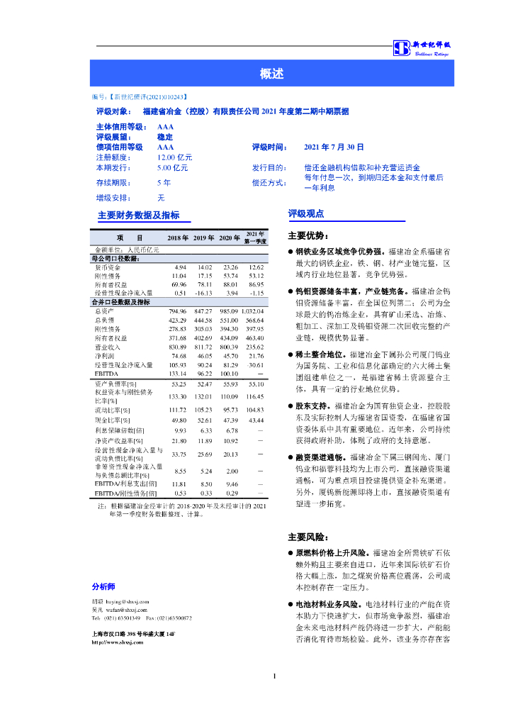 新世纪:福建省冶金(控股)有限责任公司主体评级报告.pdf