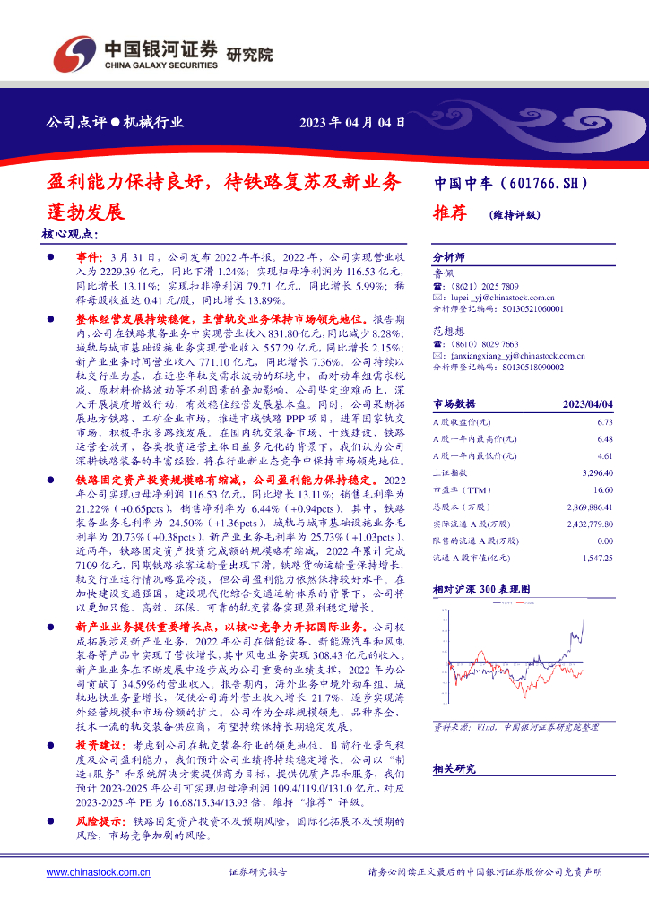 中国银河:中国中车(601766)-盈利能力保持良好,待铁路复苏及新业务蓬勃发展.pdf