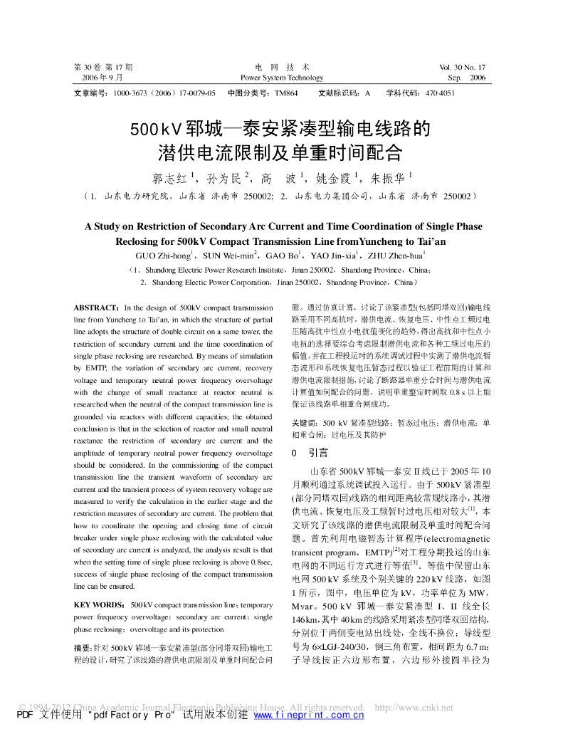 500kV凑型输电线路的潜供电流限制.pdf