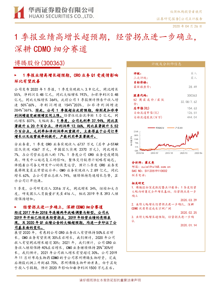 华西证券:博腾股份(300363)-1季报业绩高增长超预期,经营拐点进一步确立,深耕CDMO细分赛道.pdf