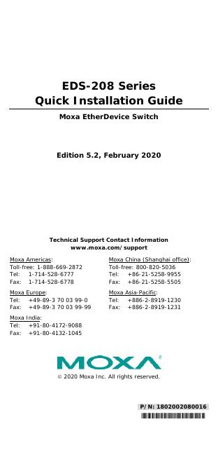 Moxa EDS-208系列以太网交换机快速安装指南.pdf