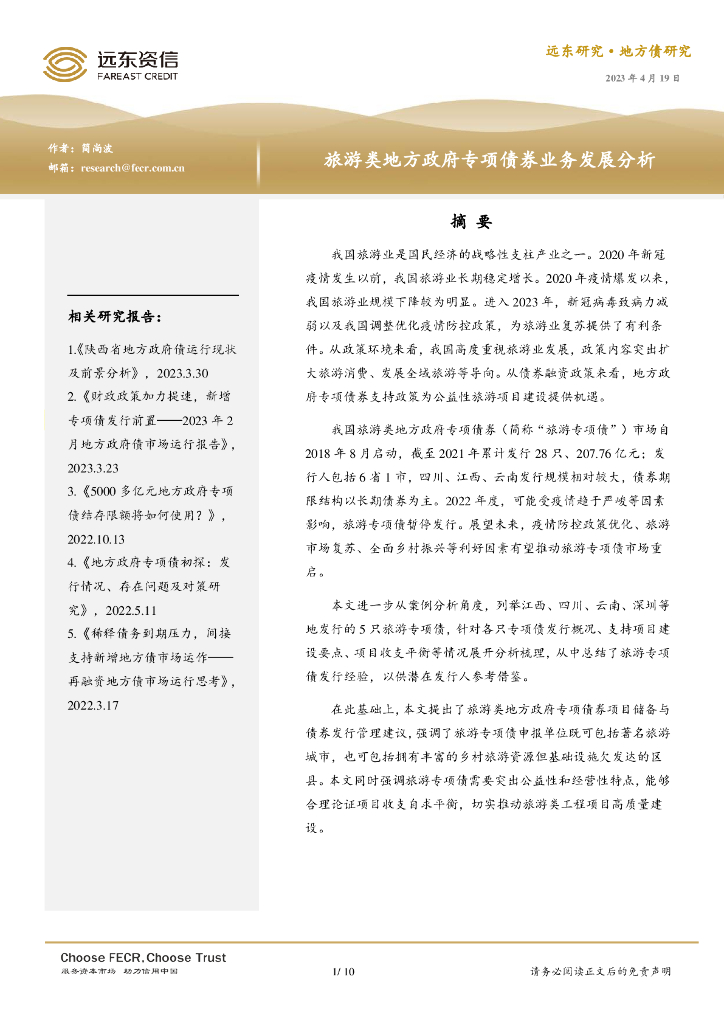 远东资信:旅游类地方政府专项债券业务发展分析报告.pdf