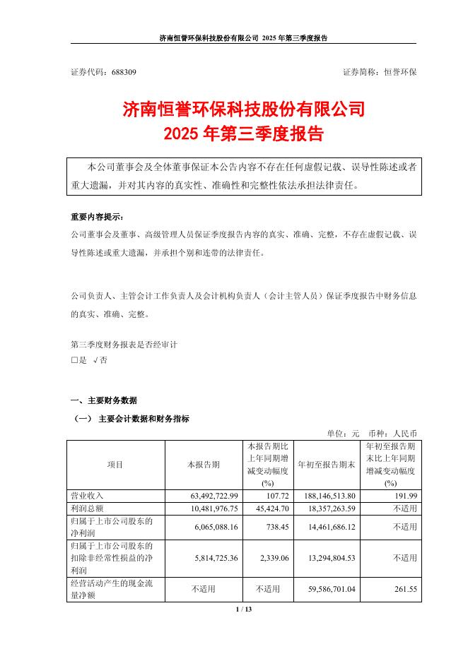 688309-恒誉环保:2025年第三季度报告.pdf
