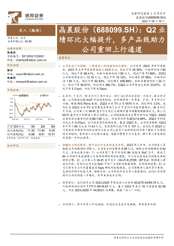 德邦证券:晶晨股份(688099)-Q2业绩环比大幅提升,多产品线助力公司重回上行通道.pdf