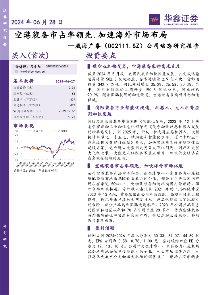 华鑫证券:威海广泰(002111)-公司动态研究报告:空港装备市占率领先,加速海外市场布局.pdf