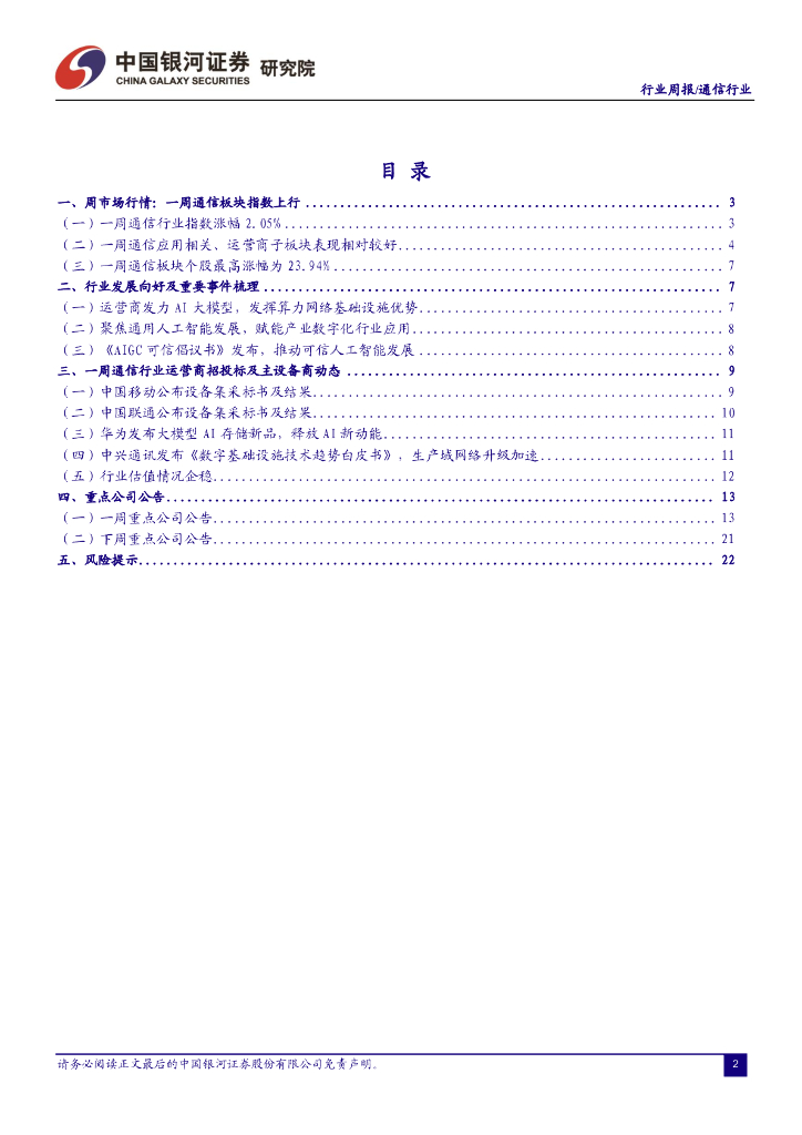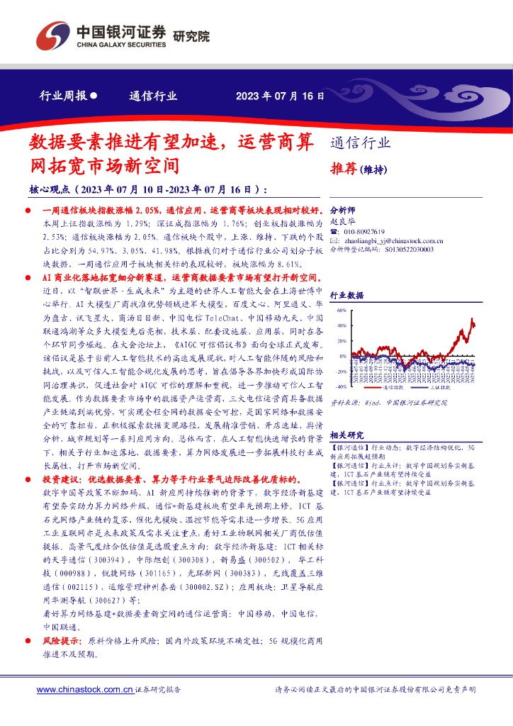 中国银河:通信行业周报:数据要素推进有望加速,运营商算网拓宽市场新空间.pdf