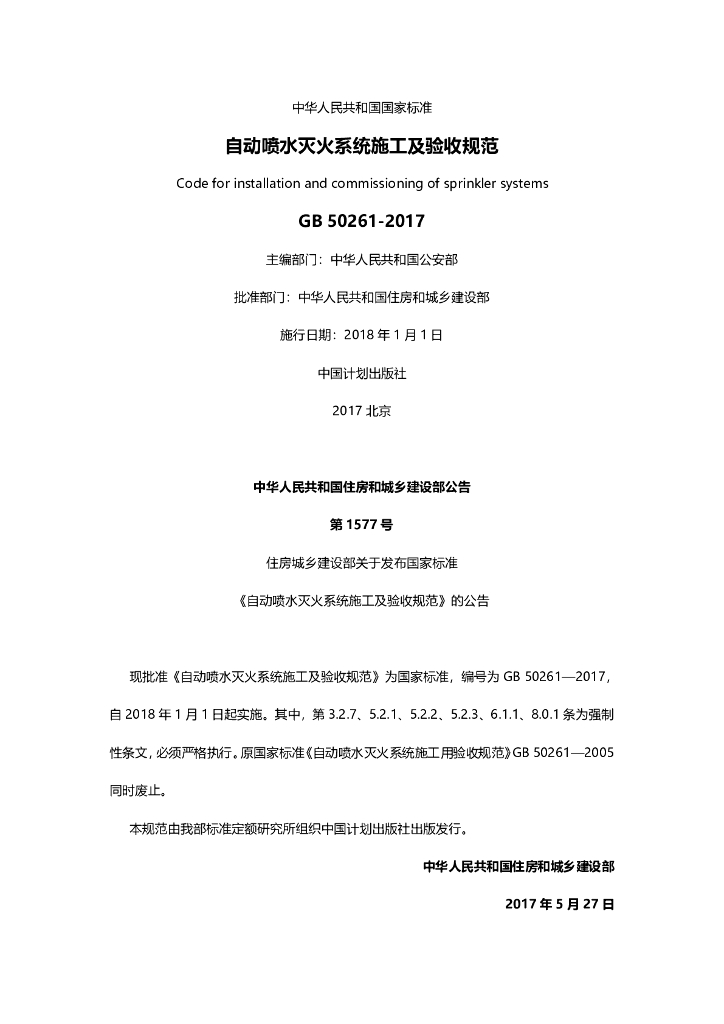 GB502612017自动喷水灭火系统施工及验收规范.pdf