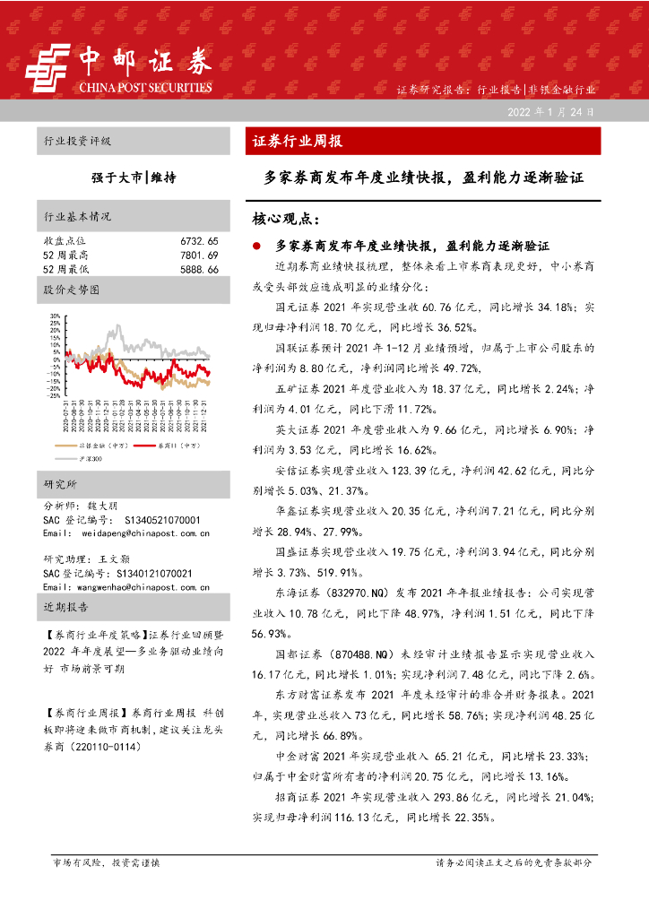中邮证券:证券行业周报:多家券商发布年度业绩快报,盈利能力逐渐验证.pdf