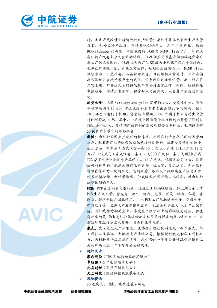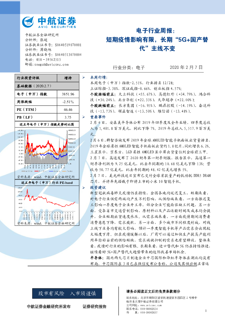 中航证券:电子行业周报:短期疫情影响有限,长期“5G+国产替代”主线不变.pdf