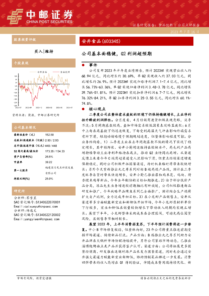 中邮证券:安井食品(603345)-公司基本面稳健,Q2利润超预期.pdf