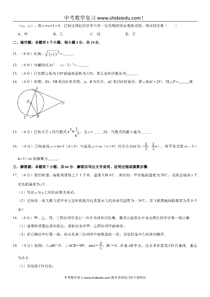 浙江省杭州市城区六校联考中考数学模拟试卷(4月份).doc