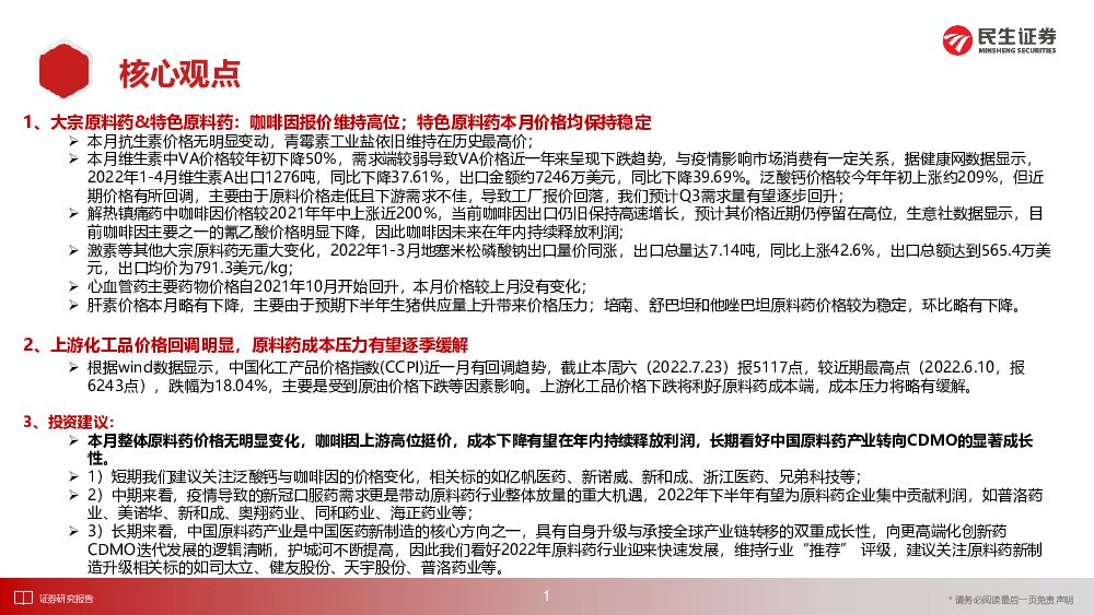 民生证券:医药新制造之原料药月报2022年6月:咖啡因价格停留高位,上游原材料价格呈回调趋势.pdf