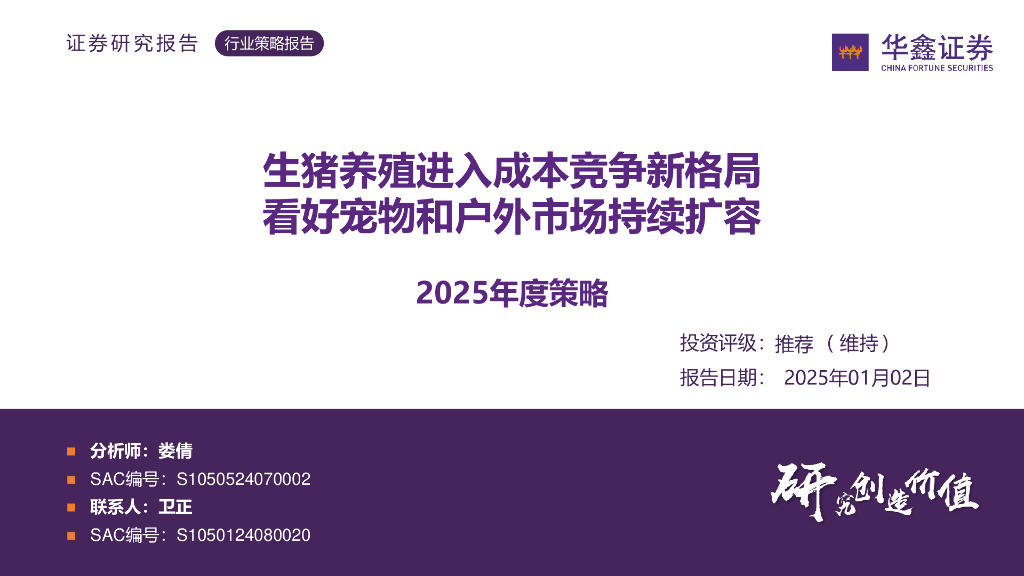 华鑫证券:2025年度策略:生猪养殖进入成本竞争新格局看好宠物和户外市场持续扩容.pdf